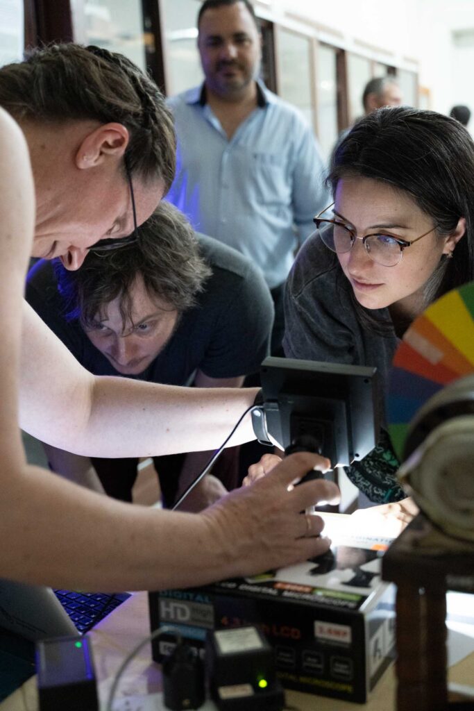 Como parte de las demostraciones y de algunas de las experiencias pedagógicas, los laboratorios de Física y Química fueron los escenarios protagonistas donde docentes y estudiantes del LVM montaron mesadas interactivas para mostrar principios y fenómenos del electromagnetismo, la hidrostática, la luz y mecanismos, ante un público atento y curioso. También, se pudo conocer una exposición de trabajos de estudiantes de 6º año sobre física moderna. En el caso de química, hubo exhibición y demostraciones sobre destilación con esencias aromáticas, indicadores naturales y pilas caseras.