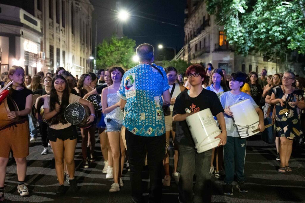 En esta edición de la noche de los museos en el Liceo tampoco faltó música. Desde el principio al final de la jornada, estuvieron presentes diferentes géneros musicales en los distintos rincones del edificio e incluso en las calles de la ciudad. Primero, se presentó el Ensamble musical, integrado por estudiantes del Ciclo Básico y del Ciclo Superior y dirigido por los profesores Martín Remiro y Javier Li. Junto a las palmas del público, el aliento y los flashes activados, hicieron un repertorio de canciones de distintas épocas del rockpop argentino. Luego, fue el turno del Coro del Liceo, que presentó un repertorio de música popular con canciones de Gustavo Cerati, Martha Gómez, León Gieco, entre otros. Como en todas sus presentaciones, estuvo firme el acompañamiento de la búsqueda de Clara Anahí Mariani/Teruggi, nombrando a través de ella a las/os nietas/os a quienes falta restituir su identidad, apropiados durante la última dictadura cívico-militar. Por último, tuvo lugar en las puertas de la escuela Candombes en diagonal, que en esta ocasión fue acompañado por la Banda de Gaitas y Percusiones Tradicionales de Galicia “Os Diagonais” del Centro Gallego de La Plata. Todo comenzó con la tocada de tambores de las chicas y los chicos del Ciclo Básico y culminó con una procesión al Museo Musical Azzarini, ubicado en calle 45 entre 6 y 7, donde se realizó un kongo mbongie (fogata de encuentro en idioma kikongo de África Central). La coordinación general de esta intervención estuvo a cargo del profesor Augusto Pérez Guarnieri. También participaron integrantes de la Cátedra Libre de Estudios Afroargentinos y Afroamericanos (UNLP).